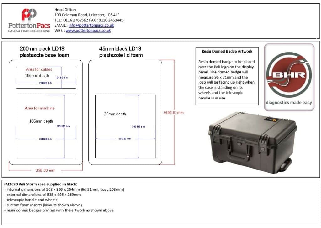 PottertonPacs designed a bespoke Peli Storm Case with a custom waterjet-cut Plastazote foam insert, ensuring each piece of medical equipment was held securely with minimal movement.