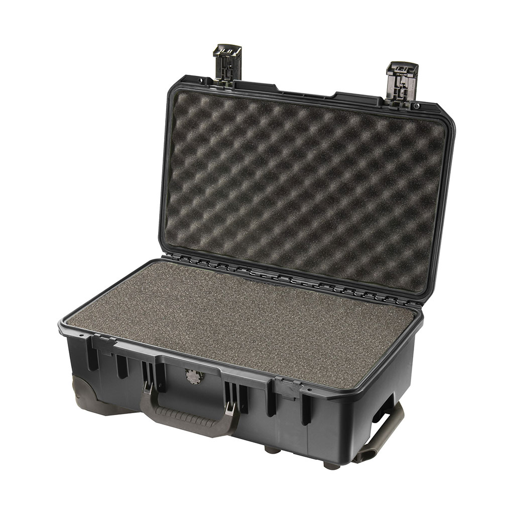 iM2500 Storm case with wheels from the Peli Storm range, strong yet lightweight this protective equipment case is fitted with retractable handle and in-line wheels. The iM2500 Peli Storm Case has the same legendary qualities as Peli Protector Case range. Two press and pull latches open with a light touch, soft grip folding carry handle and two padlock hasps. The iM2500 Storm Case can be purchased with or without a pick & pluck foam insert set. As with all Peli Cases the iM2500 Storm Case comes is supplied with the manufacturers ‘guaranteed for life’ warranty from Peli.