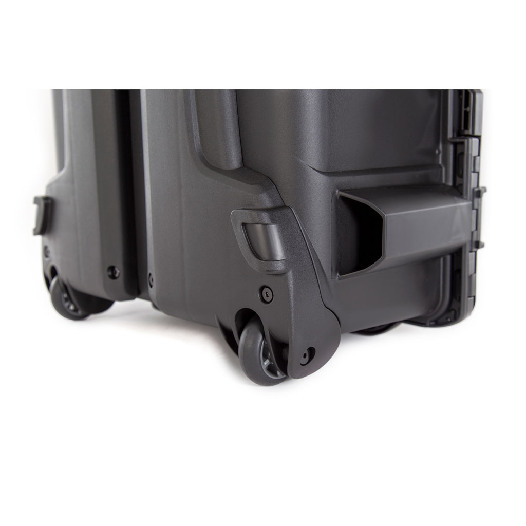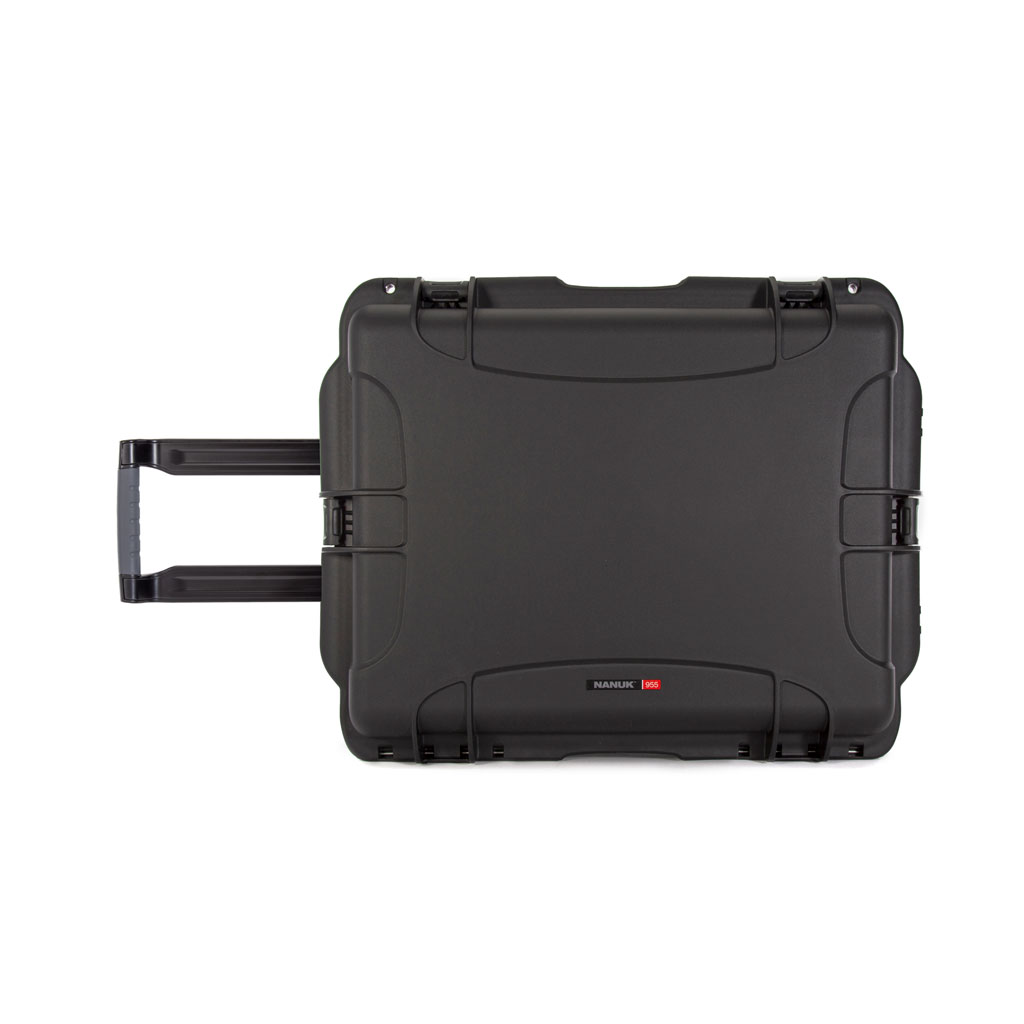 Simply press the button and the retractable handle extends, press to your choice of two positions and the NANUK 955 is ready to be wheeled to your destination with your photo gear, video gear, audio gear, medical equipment, industrial or outdoor equipment, personal effects and much more safely inside.