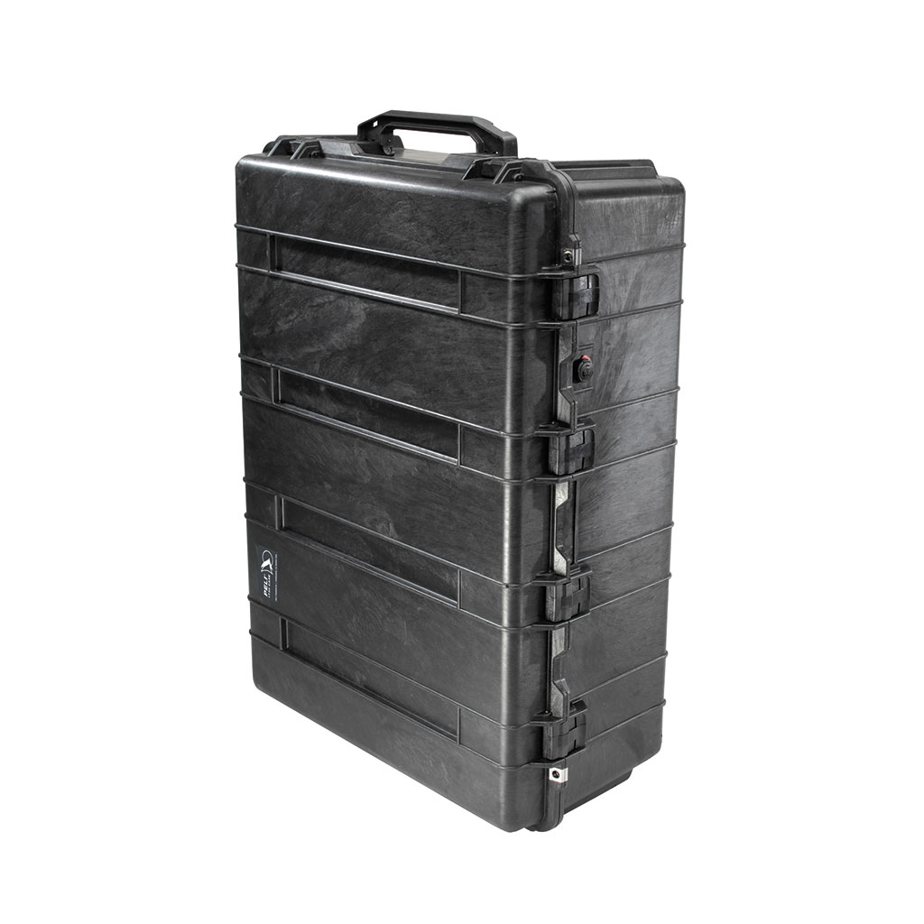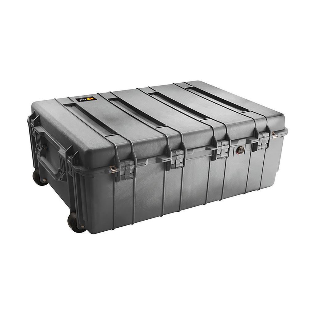 Peli 1730 watertight protective case with wheels is a large case which features two fold down handles for twin two man hand lift and 2 strong wheels and pull along folding handle. This lightweight yet extremely strong hard sided case is an ideal transport case and offers total protection to items in storage or transit. Sensitive, fragile or valuable equipment such as measuring instruments, tools, medical equipment or electronic devices are all commonly transported safely within Peli cases. Waterproof, crush resistant, dustproof the Peli 1730 cases comes supplied with the Peli lifetime manufacturers guarantee.
