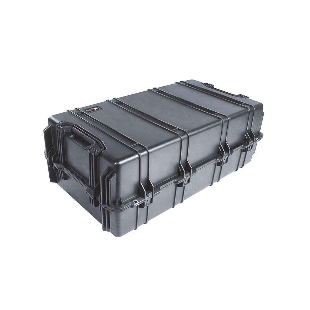 Peli 1780 watertight protective case with wheels is a large long case and features 4 strong wheels and pull along folding handle as well twin handles to each end for a two man lift. Extremely strong hard sided case which is an ideal transport case and offers total protection to extra large and long items in storage or transit. Sensitive, fragile or valuable equipment such as measuring instruments, tools, medical equipment or electronic devices are all commonly transported safely within Peli cases. Waterproof, crush resistant, dustproof the Peli 1780 cases comes supplied with the Peli lifetime manufacturers guarantee.