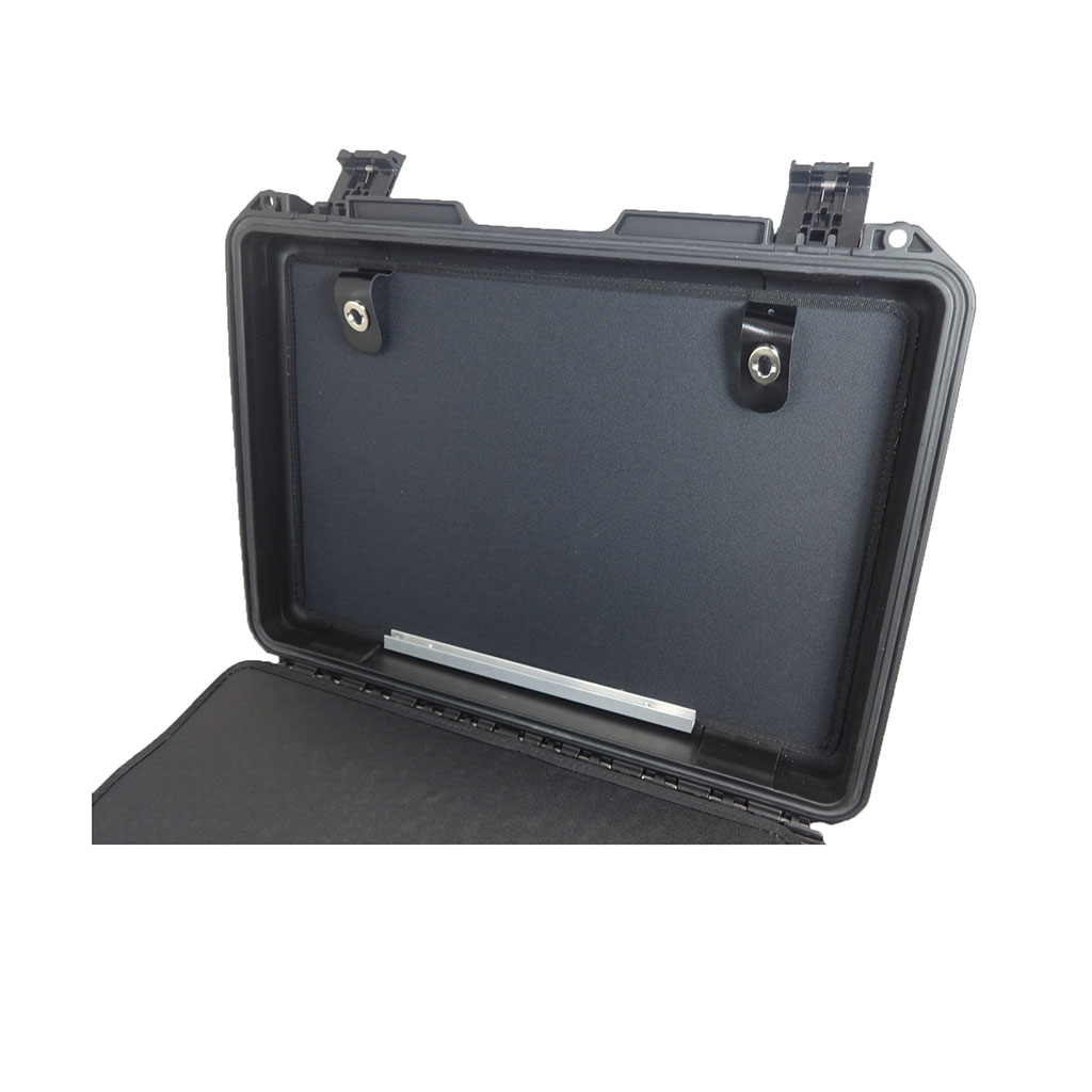 Internally the iM2620 Storm tool case has two individual versatile tool boards with pouches and elastic straps as well as a fabricated base tray with fixed dividers.  Within the lid a channel is fixed into place to offer storage for a small amount of paperwork to be carried behind the tool board and also to help keep the lid tool board in place within the case when is being used to transport tools to site.   The base of the iM2620 tool case is fitted with a tool tray and below the tool tray is 3 layers of foam 1 x 15 mm plain foam pad which is to be used as a liner plus 2 x 45mm pick and pluck foam layers for you to customise yourself to fit your tools or equipment.  The lid tool board held in place with a pair of turn buckles to secure the tool board into the case or allow complete removal and the second tool boards sits within the base section of the tool case on top of the tool tray.