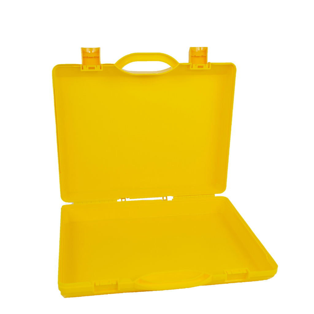 All of the plastic cases within the SPI plastic case range open to 90° and are fitted with a pair of removable stays/hinges which once removed allow the case to open to a full 180°. Fitted with strong metal pin hinges and independent secure catches, the Sprint plastic case has a moulded integral carry handle and is moulded from environmentally neutral polypropylene plastic which is unaffected by oils or petrol chemicals.