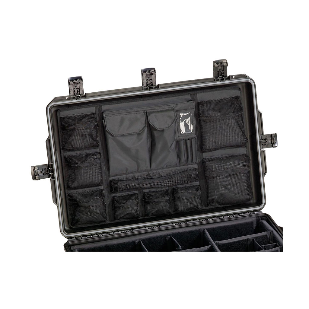 Utility lid organiser for Storm Case iM2950 from Peli. Keep your documents and stationery organised within the documents section of this iM2950 Peli Storm case lid organiser, small pockets also allow organisation of other stationary item such as pens, calculator and measuring tape or even additional leads or accessories for your equipment. A great way to utilise the space within the lid section of your Peli Storm iM2950 case. https://youtu.be/q6pzxAy5aIo
